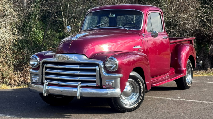 Right now on AutoHunter, you can find this 1954 GMC 100 five-window pickup, which is powered by a 228ci inline-six paired with a four-speed manual transmission. Finished in Burgundy Metallic over a burgundy vinyl interior, this half-ton truck from GMC’s New Design era is now offered by the selling dealer in Oregon with a clear title.