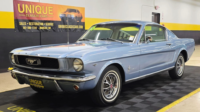 Of all the American car designs of the 1960s, the 1965-66 Mustang fastback has to be near the very top of the list. It has a lot of interesting European-type cues, and backs that up with performance to match. Today’s AutoHunter Spotlight is one of these cars, a 1966 Ford Mustang fastback offered by a dealer in Mankato, Minnesota. The auction ends Monday, October 13, 2025, at 11:30 a.m. (PDT).