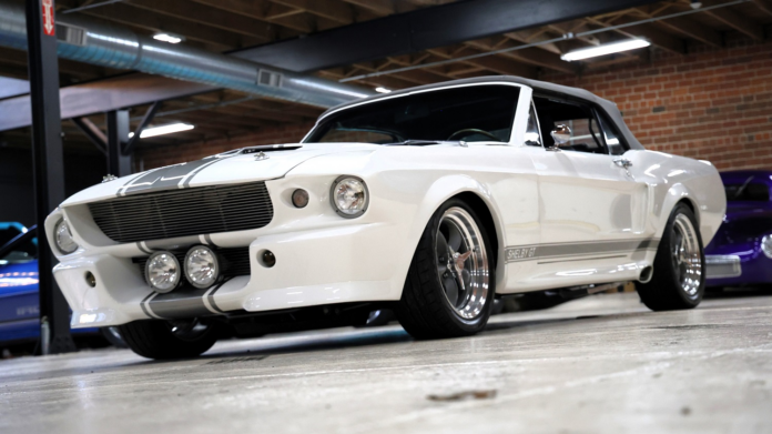 Right now on AutoHunter, you can find this customized 1967 Ford Mustang Convertible, which is powered by a 4.6-liter V8 paired with a five-speed manual gearbox. Highlights include an Eleanor-style body kit, power steering, and Baer power disc brakes. Finished in Wimbledon White with Vapor Silver stripes, and equipped with a gray power convertible top over a Dark Charcoal and Dove leather interior, this restomod is now offered by the selling dealer in Missouri with a clear title.