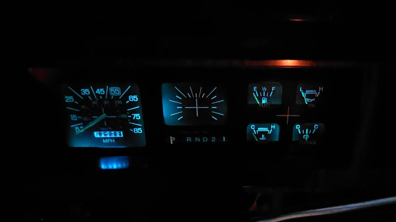 LED backlighting has been added to the instrumentation, which consists of an 85-mph speedometer and fuel, oil pressure, temperature, and voltage gauges. The odometer shows 98,378 miles, but this truck is mileage-exempt.