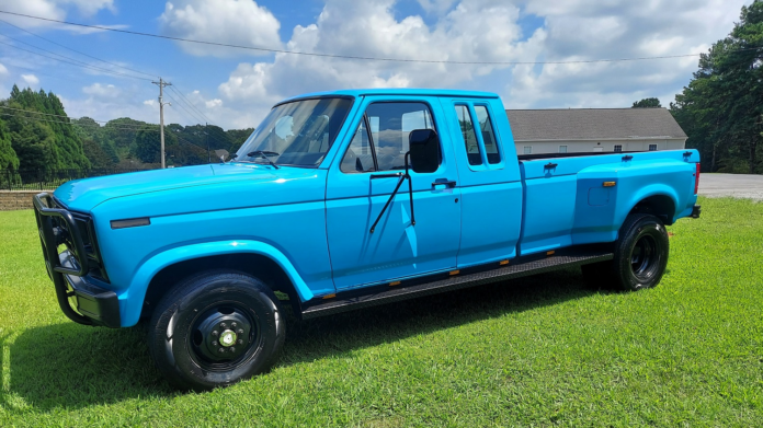 Right now on AutoHunter, you can find this 1984 Ford F-250 XL SuperCab Dually 4X4 by Centurion. It’s powered by a 6.9-liter International Harvester IDI (Indirect Injection) diesel V8 paired with a rebuilt C6 three-speed automatic transmission and a dual-range transfer case. Finished in blue over a blue vinyl interior, this “OBS” F-Series is now offered by the private seller in Georgia with spare parts, removed badges, service manual, a clean CARFAX report, and a clear title.