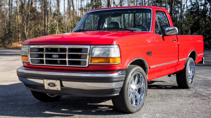 Right now on AutoHunter, you can find this 1995 Ford F-150 XLT Regular Cab, which is powered by a 5.0-liter V8 paired with a four-speed automatic transmission with overdrive. Highlights include power windows and air conditioning. Finished in Vermillion Red over an Opal Grey cloth interior, this two-wheel-drive, short-bed pickup is now offered by the private seller in South Carolina with the original owner’s manual, a clean AutoCheck report, and clear title.