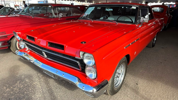 Answer: it can. Take this 1965 Mercury Cyclone that’s leading this charge: Nineteen sixty-five was the second year of the Cyclone model, and its final year as a compact. Is it the sweetest compact of the era? While you duke it out, I’ll point out what shines on this one: 302 crate V8, Demon 4-barrel carburetor, polished high-rise intake, Mallory ignition, March serpentine pulley system and, for your convenience, three-speed automatic. The pièce de resistance is that gorgeous fiberglass scooped hood.