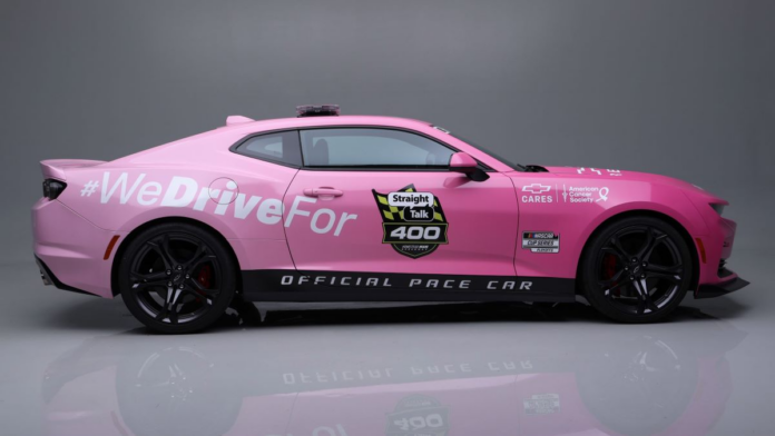 The 2022 Chevrolet Camaro SS 1LE (Lot #3000) is an official pace car built by Chevrolet for three NASCAR Cup Series races to honor “Making Strides Against Breast Cancer” during Breast Cancer Awareness Month in October 2022. It was used at the Talladega Superspeedway race, Round 8 of the playoff races at Homestead-Miami Speedway and Martinsville Speedway in 2022. The pink Camaro pace car is powered by the production 455-horsepower engine paired with an 8-speed automatic transmission. The American Cancer Society will receive 100% of the hammer price.