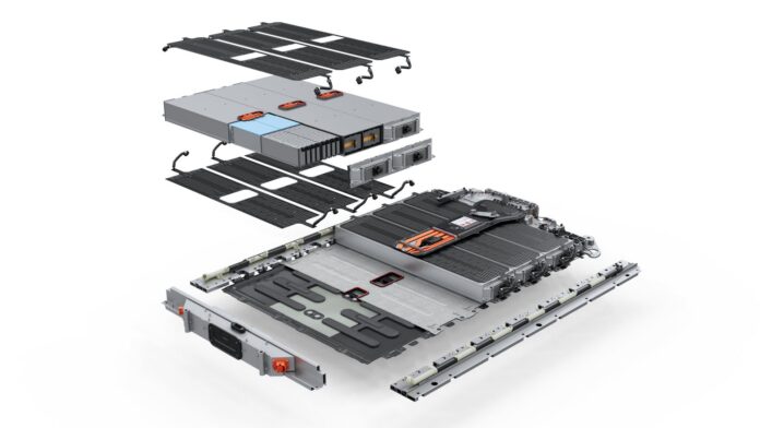 The battery features large pouch cells, and has a gross energy content of 113 kWh, enabling driving ranges of more than 600 km. It supports 800-volt fast charging. Two cooling plates cool or heat the high-voltage battery from above and below as required to help maintain optimal temperatures
