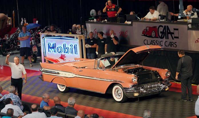 Cars-On-Line.com is reporting the action here from the GAA Classic Winter Auction at The Automobile Palace in Greensboro, North Carolina. It is Prime Time Saturday at the auction, last day of the sale, and all the top cars will cross the auction block today. This is where they hold the GAA Classic Auction three times a year. These are the “bread and butter” classics, and when they sell you note the prices. That’s how you measure the health of the collector car market. This is where we expect to see how pricing on collector cars will fair in 2024.