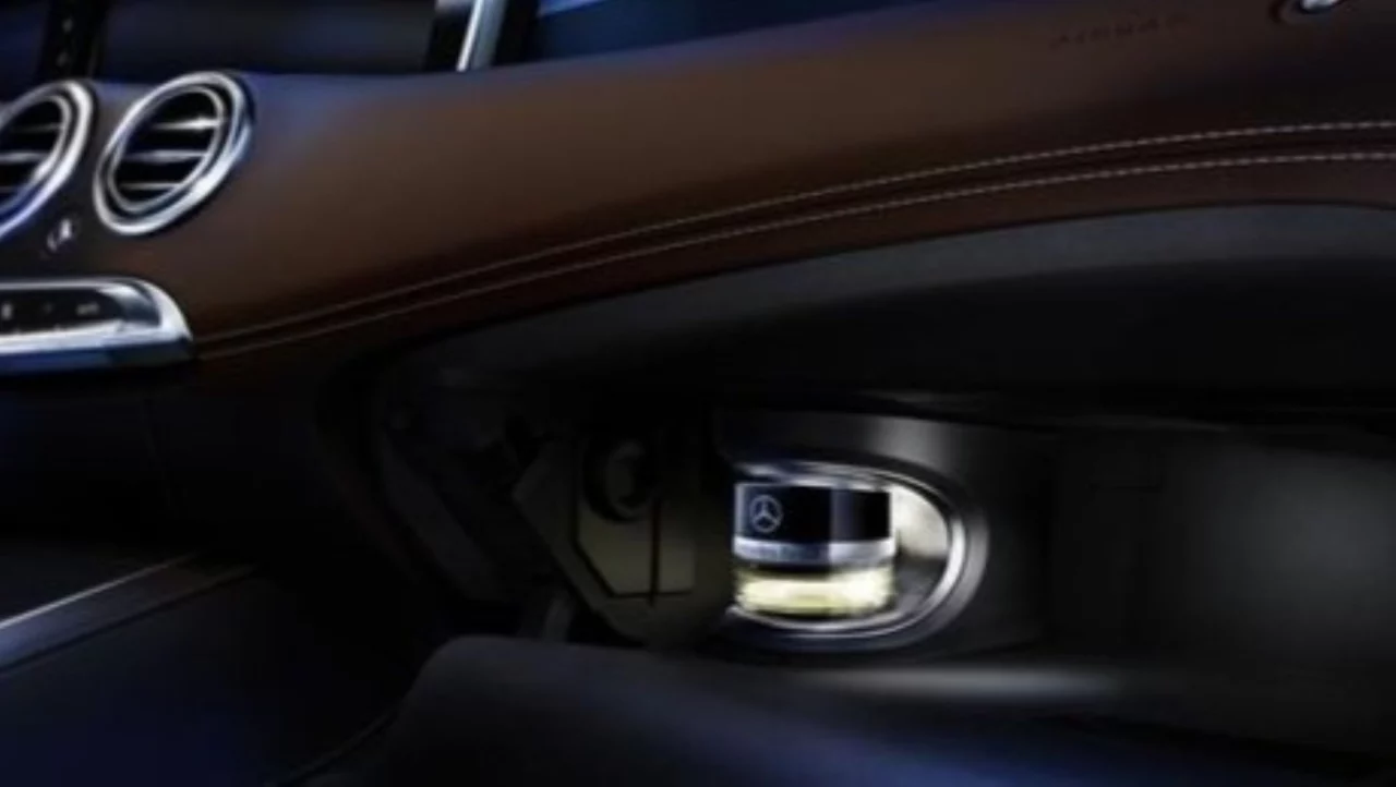 Of course, “in-car” sensory experiences are nothing new. For example, Mercedes-Benz has been offering built-in air fresheners with customizable scents for many years. The company calls its current solution the “Air Balance” system, and it works by combining air ionization, charcoal filtration, and a glove box-mounted atomizer to purify air and disperse fragrance. But having something that’s actually wearable fosters a completely different level of connection with an end user.