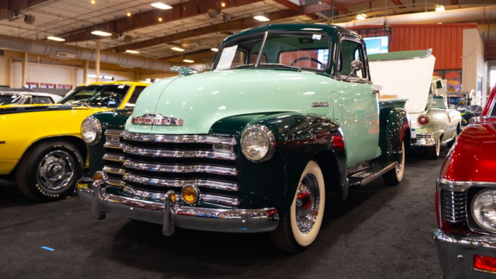 Trucks were made to work, but we’d be willing to make an exception for this 1953 Chevrolet 3100 we saw at the Barrett-Jackson 2024 Scottsdale Fall Auction. As part of a 2011 frame-off restoration, it received a handsome two-tone green finish as well as fresh chrome and an oak plank bed floor with matching side rails. There’s more green inside the cab as well as a bench seat reupholstered in two-tone gray vinyl and cloth.