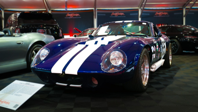 The composite body stays true to the Daytona silhouette and features high-quality components and clean execution. Power comes from a 7.0-liter FE 427 big-block V8 making an estimated 520+ horsepower with Edelbrock aluminum heads and a Borla stack fuel injection setup. All that is backed by a Doug Nash 5-speed manual gearbox and a Centerforce hydraulic clutch.