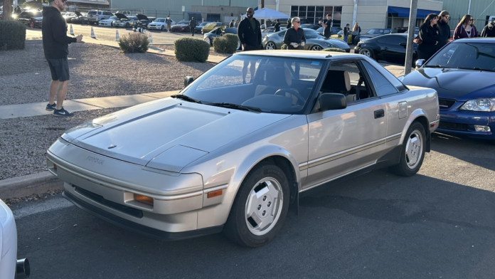 The first-generation MR2 (W10 platform) was manufactured for model years 1985-1989 and embodied many of the engineering elements that made the 1980s era so iconic: a distinctive wedge-shaped design, pop-up headlights, and available removable T-tops. The Kyusha Club, an Arizona-based car community with an emphasis on 2005-and-older European and Japanese vehicles, hosted an event in mid-February where an MR2 from each generation was on display. The 1986 model pictured herein caught my eye as an exceptionally well-kept, unmodified survivor.