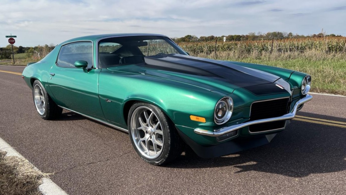 “This car has all the modern features you want, and a modern power source,” the listing says. During restoration, the exterior was coated in green metallic with black accent striping, and the look suits the car nicely. Features include a chin spoiler, chrome bumpers, a cowl induction hood, color-keyed side mirrors, rocker moldings, a spoiler, a dual exhaust system, and sequential turn signals. Capping off the car’s enhanced curb appeal is a set of Boze wheels wrapped in Toyo tires.