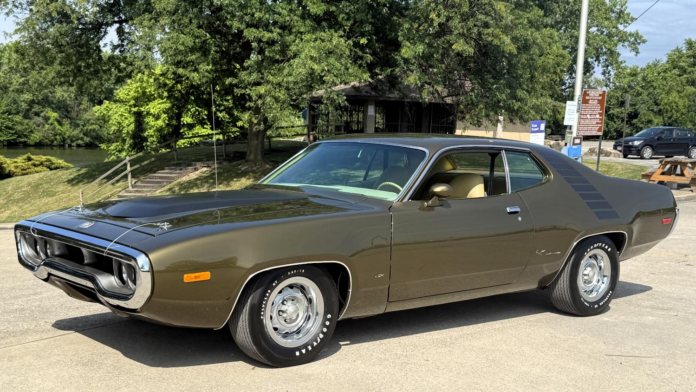This “GY9” Tawny Gold 1972 Plymouth Road Runner GTX is one of 219 U.S.-spec Road Runners built with the 440 four-barrel and four-speed. Yes, the compression is low, but that doesn’t mean this car isn’t a scorcher—plus it runs just fine on unleaded premium. “Fresh restoration on solid-body car,” says the seller. “Documented with Chrysler Corporation and dealer invoices, being sold new from Schoenhals Motor Sales, Inc. in Imlay City, Michigan.” Features include a 440 with 0.30 overbore plus aluminum heads, Gold buckets, a center console, the Décor Group, power steering and brakes, the Rallye instrument cluster, an AM/FM radio, the “N96” Air Grabber, black Strobe striping (though the invoice originally specifies gold), and 14-inch Rallye road wheels, among other items.