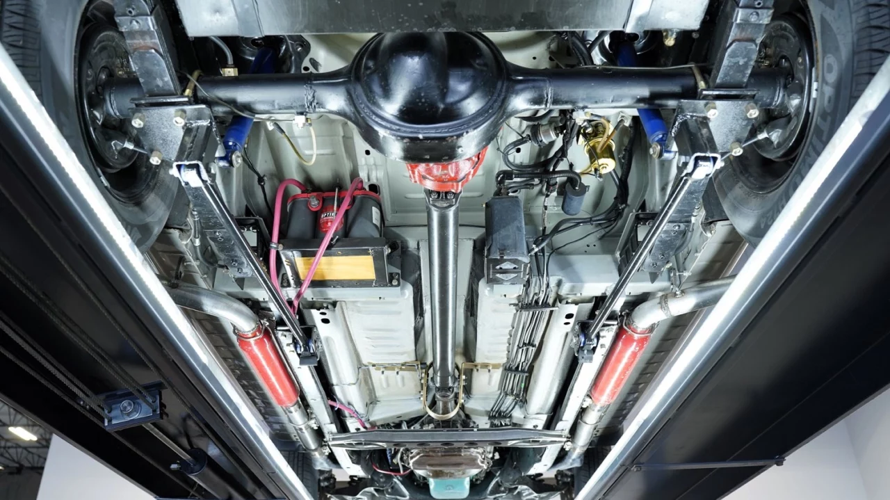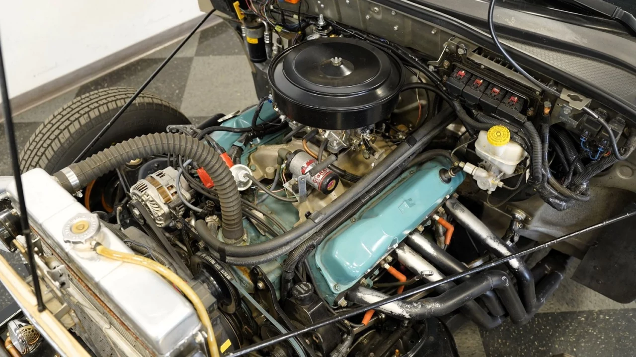 Instead of trying to pair the new engine with the stock transmission, the people behind this creation opted for a TorqueFlite A727 three-speed automatic. Just as significant as the engine is the conversion to rear-wheel drive: Power reaches the street through a nine-inch rear end with leaf springs. How’s that for retro?!