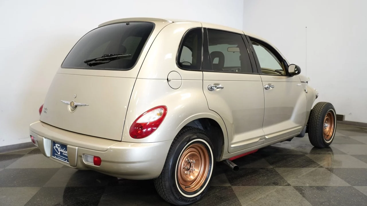 As I discovered while researching the Chrysler PT Cruiser for a recent article on Woodys, the Art Deco era of the early 20th century influenced its looks. You can still see that in this Linen Gold Pearl ’06 model — most of it, anyway. You may have noticed that it has a few alterations (if you didn’t, I recommend an eye exam).