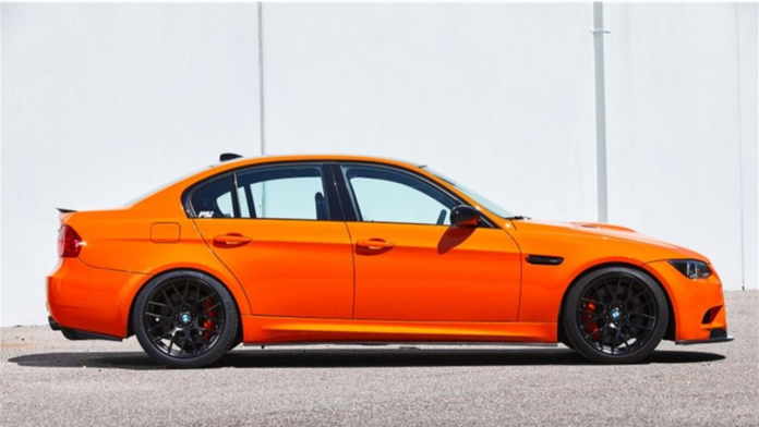 This 2011 BMW M3 Competition Sedan is interesting because 2011 was the first year for the Competition Package and the final year for the E90 M3. For the model year, 2,170 M3 sedans were built, of which 1,220 were equipped with the Competition Package. Of those, only five M3s were built in Fire Orange, one of 30 special-order M3s painted in a “different” color. According to the seller, “the original owner [spent] 10s of thousands of dollars on modifications on top of the $72,325 MSRP,” leaving us with a completely unique vehicle. “To keep the Fire Orange paint looking flawless, both the front end and rear bumper have been wrapped in Paint Protection Film and the entire car has been ceramic coated, meaning that even 12 years after production, the paint shows like new.” The front seats have been upgraded with AMC Custom BMW M Performance buckets with leather, Alcantara, and orange accents.
